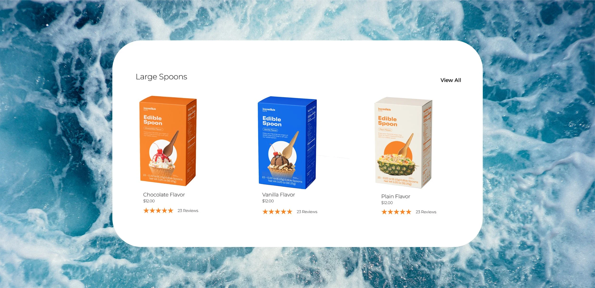 Incredible Eats is on a mission to reduce plastic pollution in the ocean. The company sells a line of fully edible, backyard compostable, plastic-free cutlery. Incredible Eats aims to replace single-use plastic cutlery as well as greenwashed “compostable” cutlery at festivals and ice cream franchises. The brand design was created to be fun and approachable: to encourage people to make a sustainable choice.